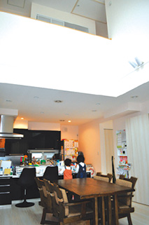 「吹き抜けのある空間が欲しかった」と言う奥さん。吹き抜けのリビングは開放的で明るく、家族だんらんの場にぴったりです。