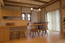 新日本建設がプロデュースする「本格自然素材の家」は、無垢材をふんだんに使います。自社の山から木を切り出し、塗料や接着剤にも天然素材を使うなど、構造材から仕上げ剤まですべて自然素材にこだわっています。 木は調湿作用と断熱性に優れ、夏涼しく冬暖かい快適な室内環境を実現するだけではありません。軽い傷やへこみには、濡れたタオルの上からアイロンを当てると目立たなくなるという優れものでもあります。 |
