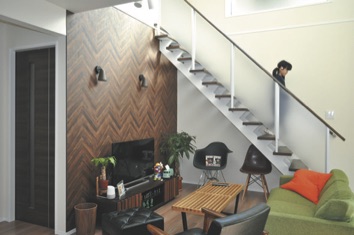 新しい家での生活について聞くと「住みやすくて快適ですね。ナチュラルテイストの床や壁にミッドセンチュリー家具(※)を合わせたインテリアが気に入っています。階段をリビングにつけ、家族がコミュニケーションを取りやすくしています」とUさん。「物が多いキッチンではパントリーがとても重宝しています。オープンキッチンで子どもたちと一緒に料理をして楽しんでいます」と奥さま。