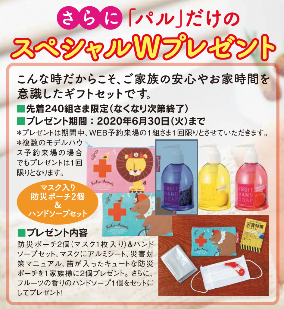 先着240組さまにマスク入り防災ポーチ2個&ハンドソープセットプレゼント