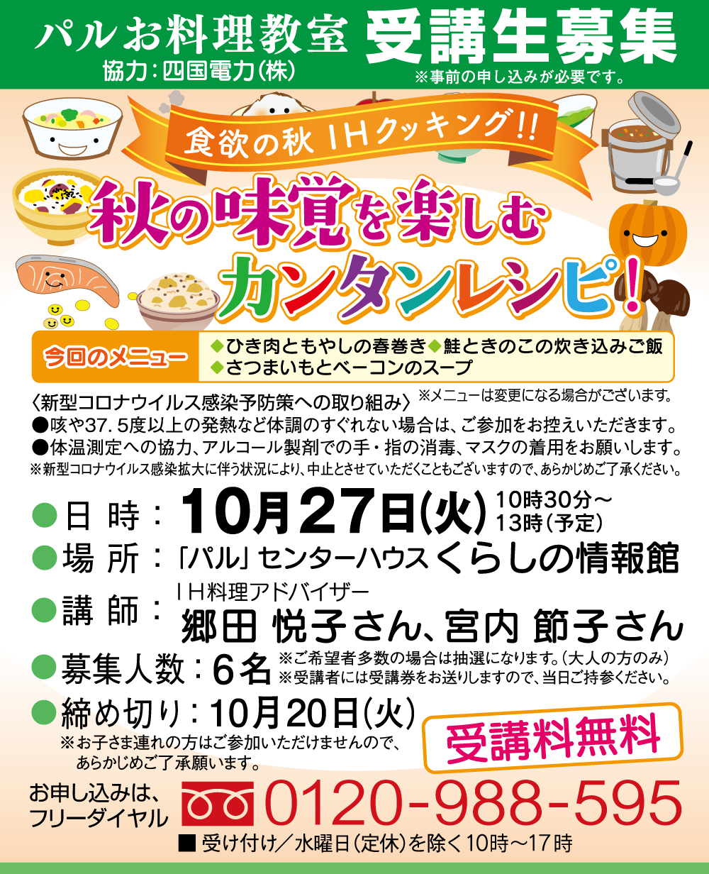 【日時】10月27日(火) 10時30分~13時(予定) 受講受け付け:10時15分~