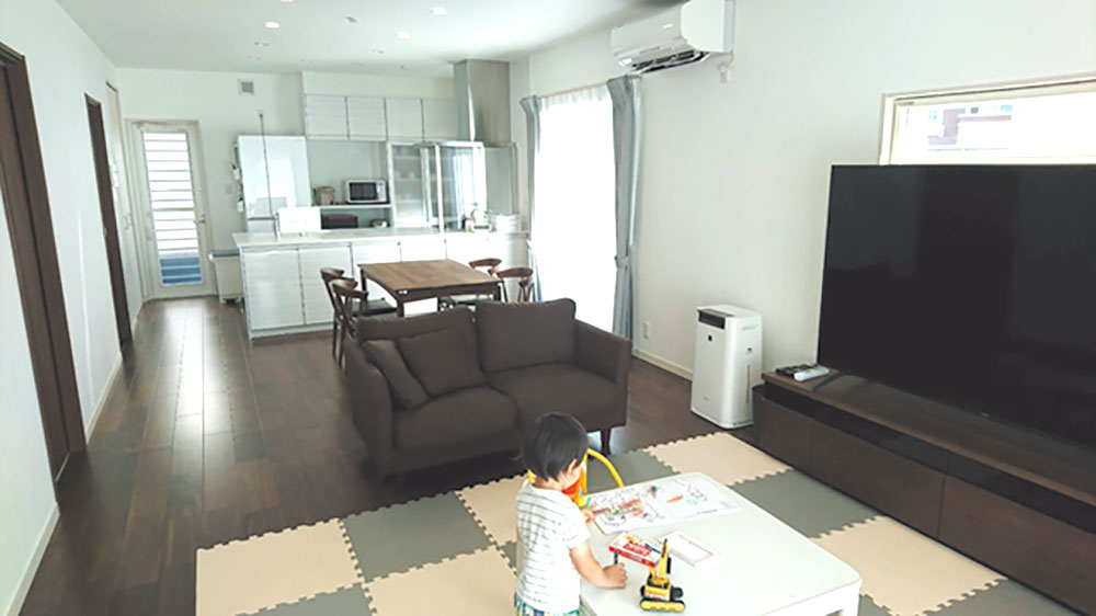 LDKは20畳もあります。広い空間で、お子さんも毎日伸び伸びと過ごしているそうです。