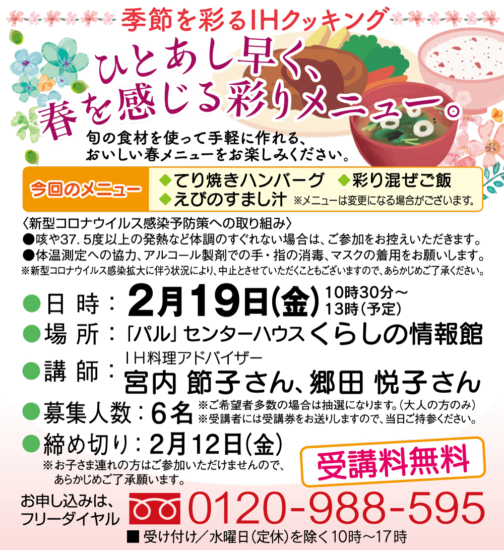 〜季節を彩るIHクッキング〜ひとあし早く、春を感じる彩りメニュー。