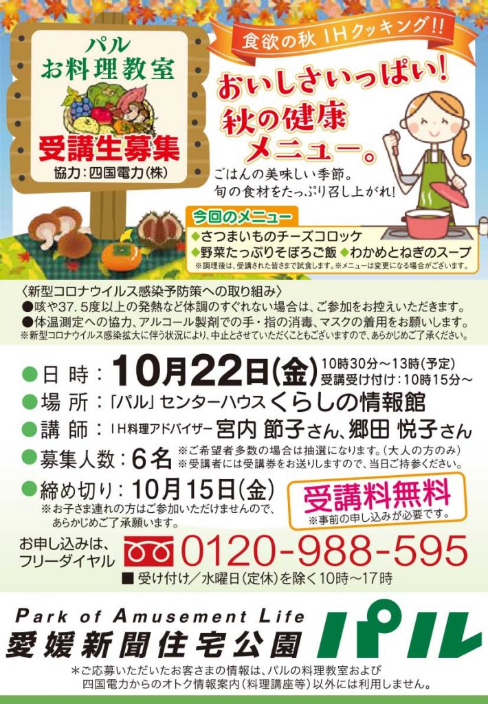 【受講料無料★お料理教室】おいしさいっぱい!秋の健康メニュー。 – 愛媛新聞住宅公園PAL