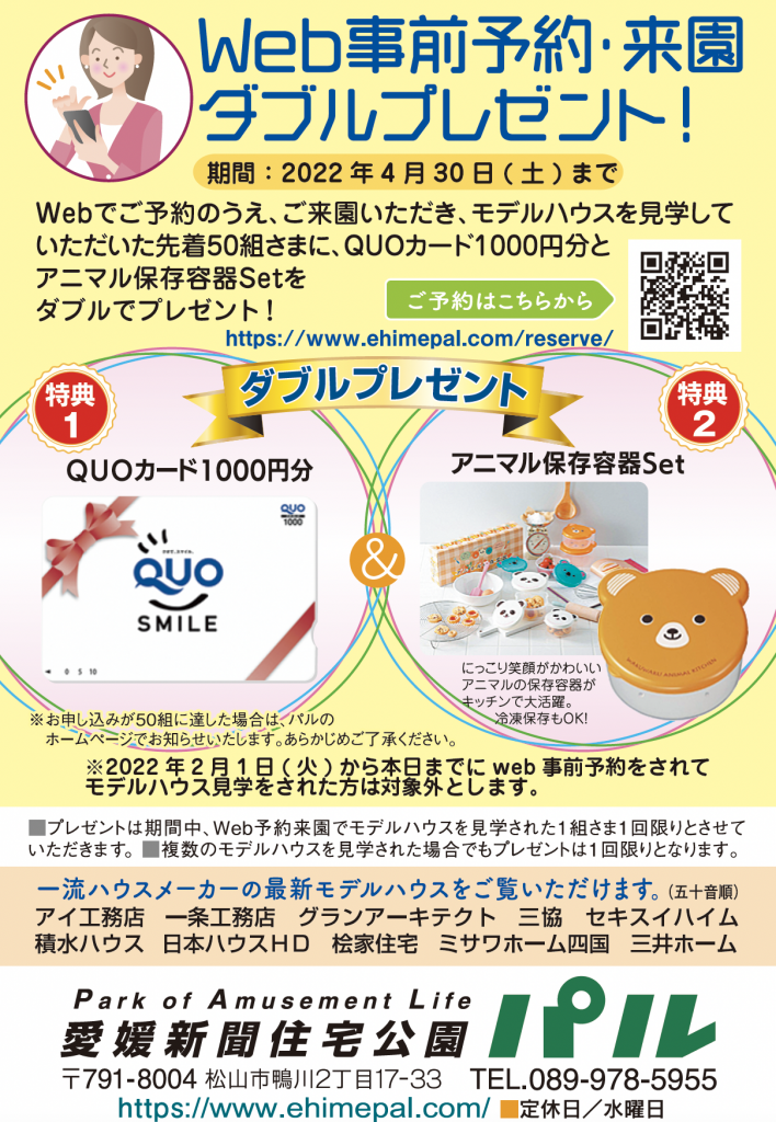 【Web事前予約・来園Wプレゼント!】先着50組さま – 愛媛新聞住宅公園PAL