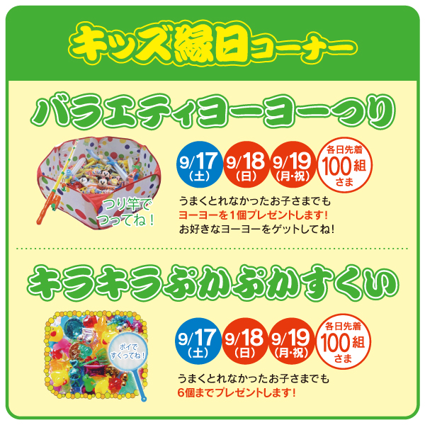 9/17(土)・18(日)・19(祝月)※各日先着100組さま