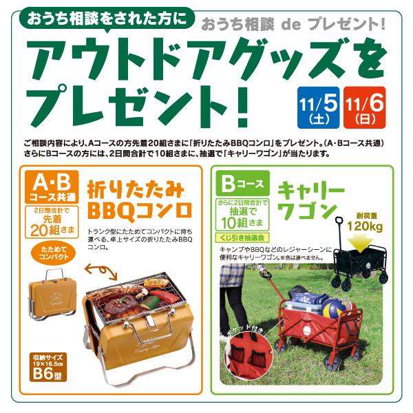 おうち相談をされた方にアウトドアグッズをプレゼント!